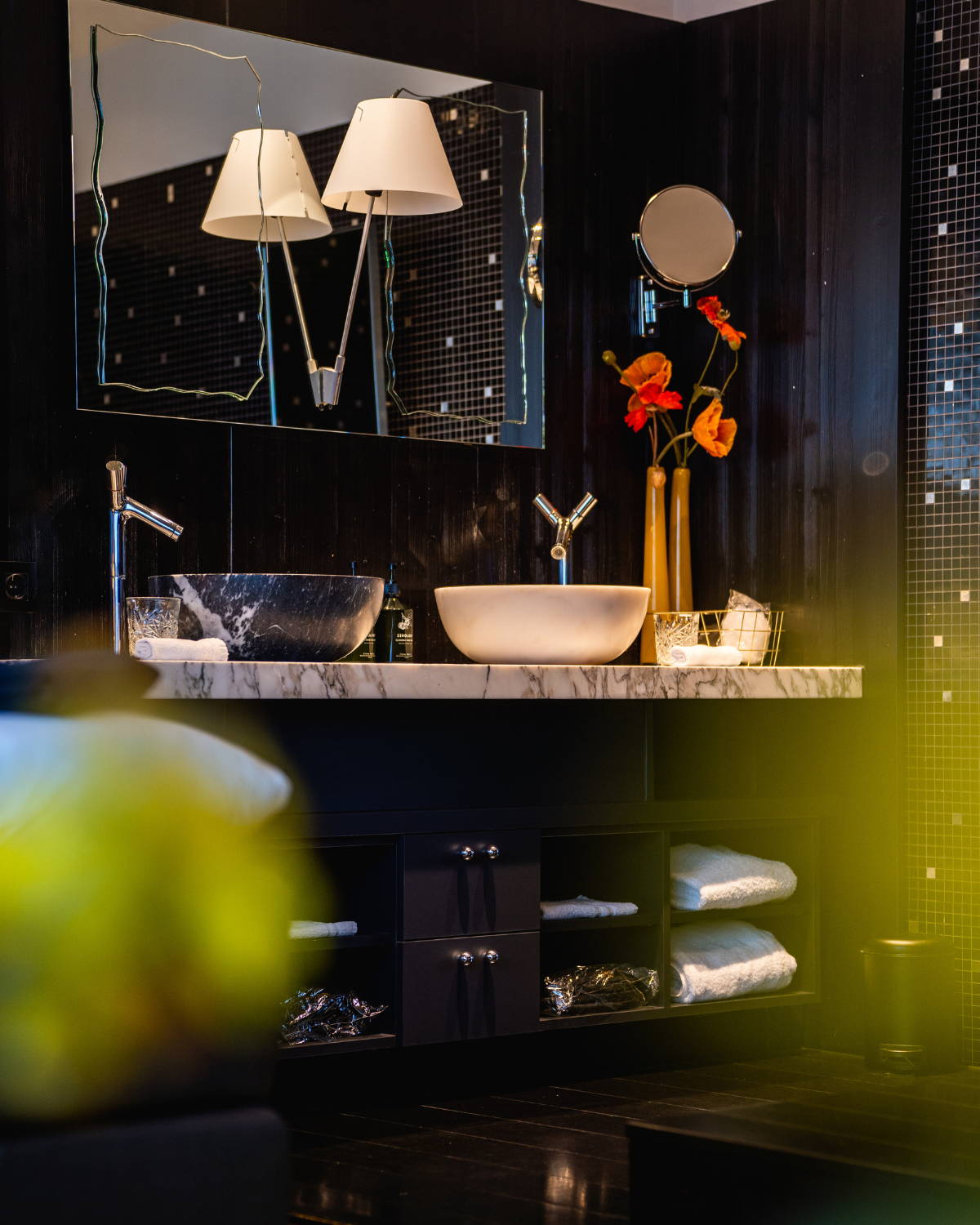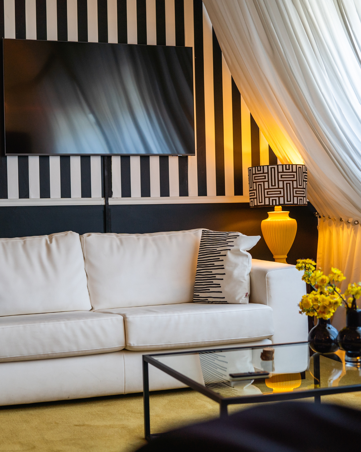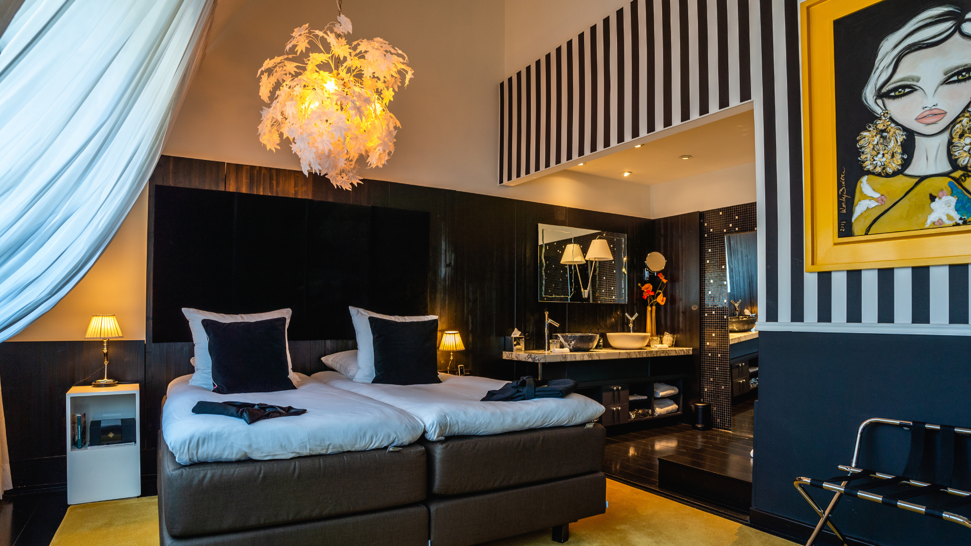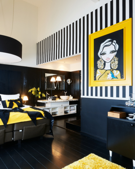 Lose yourself in the elegance of the spacious room Moerasspirea, where black, white and yellow accents create a harmonious atmosphere of tranquillity and luxury.
